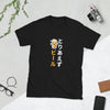 A cheerful cartoon cat smiles as he eagerly requests sushi in playful Japanese slang. He says "Sushi, kuitenaa" which is a masculine casual way to say "I wanna eat sushi" in Japanese.